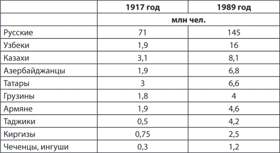 Даже западные специалисты называют СССР «империей наоборот», отмечая, что Московская метрополия всегда подпитывала свои окраины, а не выкачивала из колоний ресурсы, как Лондон или Париж. Достаточно в советские времена было перенестись из русской деревни в молдавскую или грузинскую, чтобы понять, где пироги пышнее. Катастрофическое падение уровня жизни в Грузии и Молдавии после 1991 года – тому подтверждение. Ещё одним аргументом являются демографические показатели. Вот таблица этнического состава Российской империи накануне её гибели (1917) и СССР перед распадом (1989).