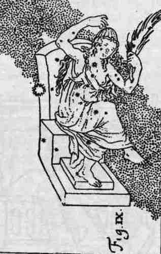 Рис. 97. Созвездие Трона с сидящей на нем человеческой фигурой. Взято из книги «Astrognosia» XVI века. Книгохранилище Пулковской I обсерватории (Санкт-Петербург). См. также [544], т.1, с. 221. илл. 60.