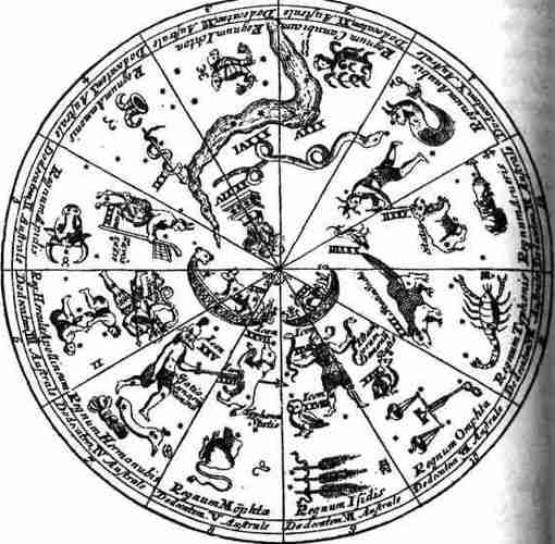 Рис. 99. Египетское звездное северное полушарие. Взято из книги: Corbinianus, «Firmamentum Firmianum», 1731 год, [1077]. Книгохранилище Пулковской обсерватории (Санкт-Петербург). См. также [543], с. 276, илл. 143.