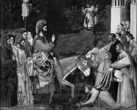 Рис. 4.10. Вход Христа в Иерусалим. Фреска Джотто. Падуя, капелла дель Арена. Якобы 1303–1305 годы. Взято из [654:0], с. 209, илл. 114.