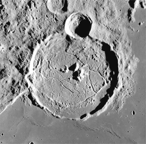 Еще одна такая яма была сфотографирована с борта «Аполлона-15». Ее структура чем-то похожа на отпечаток каблука, но огромного, размером в три километра. Необычную деталь исследовали стереоскопически. Оказалось, ее глубина несколько десятков метров. Судя по отсутствию в ней кратеров, она более позднего происхождения, чем окружающее море застывшей лавы. У некоторых ученых даже возникает гипотеза, что это кто-то занимается выработками лунного грунта.