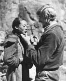 Шефер с настоятелем буддийского монастыря в Лхасе и мотоциклистом Мондре