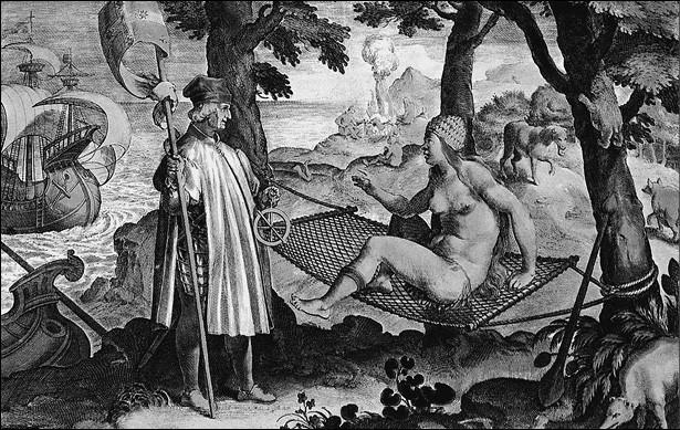 Америго Веспуччи в книге Теодора де Бри «История Америки»