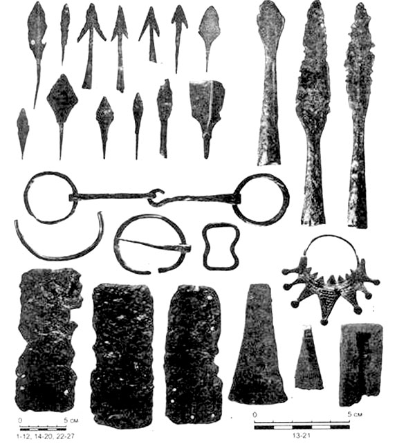 Городище Хотомель, Полесье. Оружие, элементы упряжи, украшения и панцирные пластины, та же эпоха