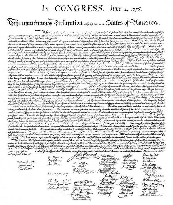 Декларация независимости США – исторический документ, в котором британские колонии в Северной Америке объявили независимость от Великобритании, принят единогласно Вторым Континентальным конгрессом 4 июля 1776 года в Филадельфии, штат Пенсильвания.