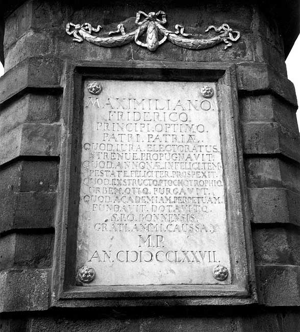 Рис. 138. Надпись на колонне в центре германского города Бонна. Дата 1777 год записана в довольно непривычном сегодня виде. Видно, что даже в XVIII веке унификация записи дат еще не была достигнута. Фотография сделана автором книги в 1998 году.