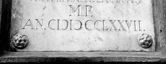 Нетрудно сообразить, что на самом деле это MDCCLXXVII, то есть 1777 год. Однако буква M записана как СI?, буква D как I?. То есть в записи букв M и D использованы ПОЛУМЕСЯЦЫ, правый и левый. Отсюда ясно видно, что даже в конце XVIII века унификация записи «римских дат» в Европе еще не была достигнута. Конечно, в XVIII веке уже более или менее внедрили общие правила, но все-таки следы прежнего «письменного хаоса» явственно видны.