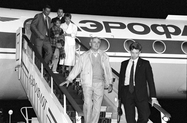 Президент СССР Горбачев М. С. с семьей возвращается из Фороса в Москву. 1991 год