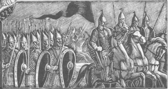 Игорь ждет мила брата Всеволода. И рече ему буй-тур Всеволод: «Один брат, один свет светлый ты, Игорю! Оба есве Святославличя. Седлай, брате, свои борзый комони, а мои ти готови, оседлани у Курьска напереди. А мои ти куряни – сведоми кмети: под трубами повити, под шеломы възлелеяны, конець копия въскормлени; пути имь ведоми, яругы имь знаеми, луци у них напряжени, тули отворени, сабли изострени; сами скачють, акы серыи волци в поле, ищучи себе чти, а князю славе».