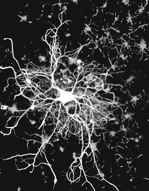 В организме каждого человека насчитывается более ста миллиардов нейронов; каждый нейрон состоит из ядра, тела и отростков. Благодаря отросткам нейроны контактируют друг с другом и образуют сети и круги, по которым циркулируют нервные импульсы. На протяжении всей жизни мозг человека теряет нейроны. Такая гибель клеток генетически запрограммирована… Но как, по какому принципу работает мозг, — мы не знаем.
