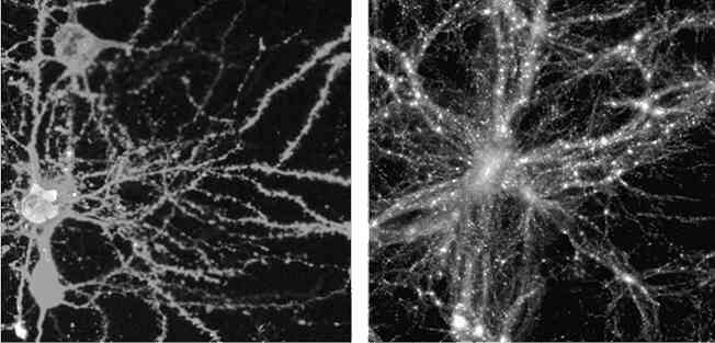 Слева — клетки головного мозга (нейроны) мыши, справа — структура Вселенной.