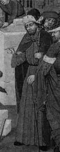 Рис. 20. Увеличенный фрагмент миниатюры. Любопытный штрих — зимняя шапка-ушанка на голове одного из троянских царей. Взято из [1485], илл. 201. Такие шапки типичны, например, для Руси, где бывают холодные зимы.