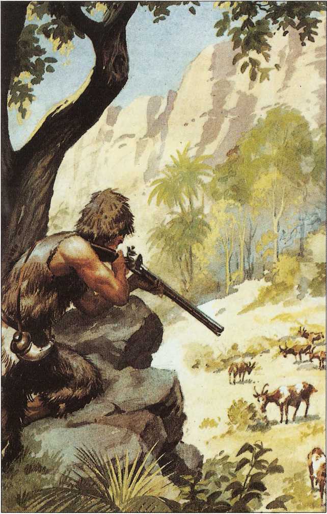 Александр Селькирк охотится на диких коз на острове Хуан Фернандес