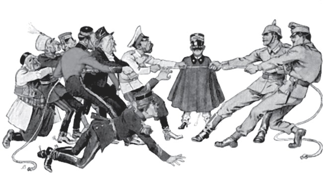 Карикатура, изображающая борьбу и соперничество в Европе в 1914 году