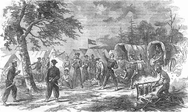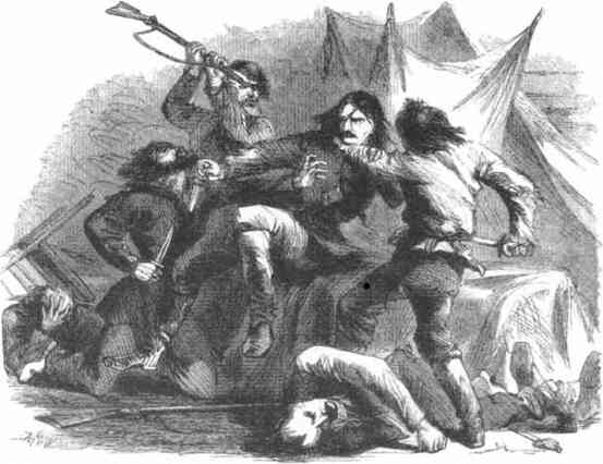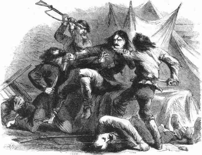 Рис. 23. Солдаты Конфедерации тренируются в метании ножей боуи. Harper’s Weekly от 31 августа 1861 г.