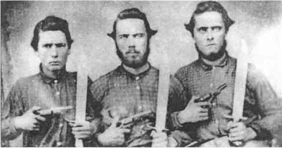 Рис. 3. Братья Читвуд из 23 пехотного полка Джорджии с ножами боуи и револьверами Кольта,31 августа 1861 г.