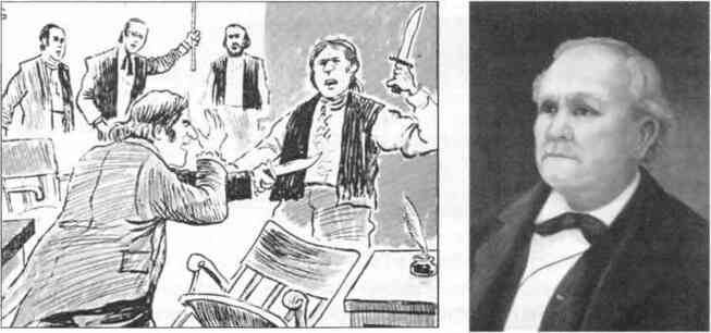 Надо отметить, что Клэй был далеко не единственным политиком, имевшим привычку хвататься за нож. Многие его южные коллеги были темпераментны, вспыльчивы, драчливы и горды, и практически у каждого во внутреннем кармане жилета лежал смертоносный боуи. Так, декабрьским вечером 1861 года некие Стюарт и Уайт встретились перед отелем «Сент-Чарльз», и Уайт потребовал от Стюарта объяснений по поводу его выпадов в адрес аболиционизма. Ответ Стюарта не удовлетворил Уайта, и они взялись за оружие: Уайт вытащил револьвер системы «Дин-Адамс», а Стюарт — сицилийский нож. В результате этой схватки Стюарт получил два пулевых ранения: одно чуть ниже левого глаза, а второе в плечо. У Уайта были жутко изрезаны голова и руки. При этом удары ножом наносились с такой силой, что лезвие сломалось о челюсть. Оба были перевезены в госпиталь. Стюарт прожил после дуэли всего несколько часов, но и Уайту врачи не оставляли много шансов[878].