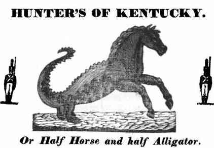Но, как оказалось, происхождение этого образа связано не с конями и не с крокодилами, а с Миссисипи и жившими на ней людьми. Ещё в 1808 году Кристиан Шульц, Томас Боллинг Робертсон и другие путешественники использовали это выражение как метафору для описания характера жителей низовьев Миссисипи. В вышедших около 1820 года «Кентуккийских охотниках» песенник Сэмюэль Вудворт описал западного ополченца Андрю Джексона, участвовавшего в битве при Новом Орлеане, фразой: «Каждый из них был полуконём, полуаллигатором». Вскоре газетные юмористы перенесли образ Коня-Аллигатора в фольклорные байки о Дэвиде Крокете и в другие эпические сказания о Диком Западе, известные как «Кентуккийские истории». Эти персонажи были пьяницами, стрелками, грубиянами, свирепыми бойцами и плевали на законы, но при всём этом каким-то загадочным способом оставались неотразимыми и романтичными[932].