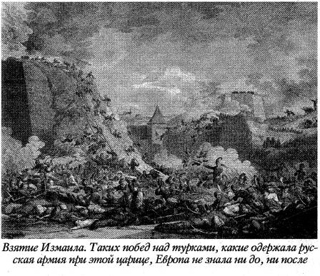 Но оказалось, что у бабы-царицы имеются отличные полководцы и бодрые кровожадные солдаты, способные воевать только на хлебе и водке. К баталиям в Причерноморских степях Россия была настолько готова, что расколотила турецкую армию в пух и прах буквально в первых сражениях. Только чалмы с бусурманских голов летели.